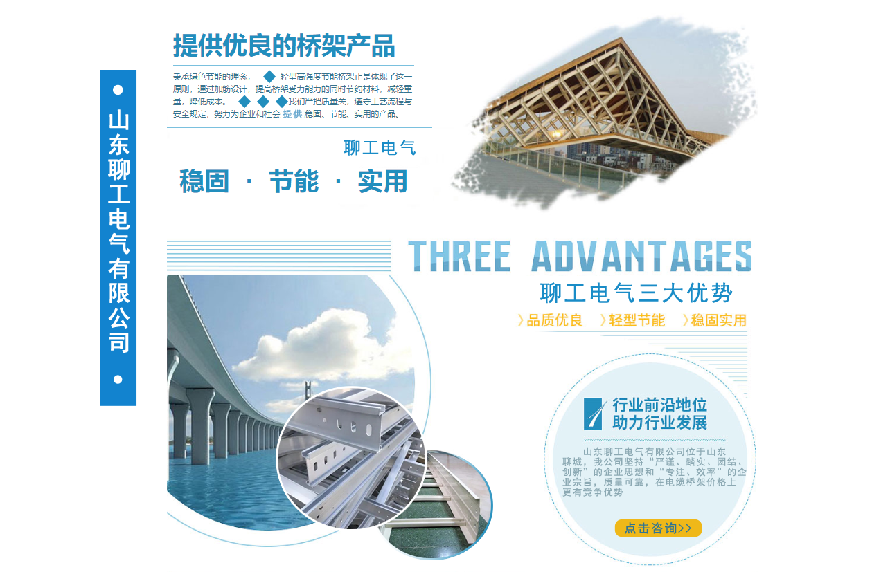 山東聊工電氣有限公司位于山東聊城,是一家銷售各類橋架的公司,公司主營鍍鋅防火噴塑橋架,鍍鋅防火電纜橋架 ,不銹鋼電纜橋架,熱浸鋅電纜橋架,鋁合金電纜橋架,熱鍍鋅電纜橋架,梯式電纜橋架等我公司堅(jiān)持“嚴(yán)謹(jǐn)、踏實(shí)、團(tuán)結(jié)、創(chuàng)新”的企業(yè)思想和“專注、效率”的企業(yè)宗旨,質(zhì)量可靠,在電纜橋架價格上更有競爭優(yōu)勢。公司追求品質(zhì),配有研發(fā)人員,進(jìn)行產(chǎn)品的改革和創(chuàng)新,服務(wù)先進(jìn)走出了一條富有企業(yè)特色的可持續(xù)化發(fā)展之路! 我公司鄭重向你承諾:保證最好的質(zhì)量,以低的價格,完善的售后服務(wù),來答謝新老客戶。可提前電話聯(lián)系。...
